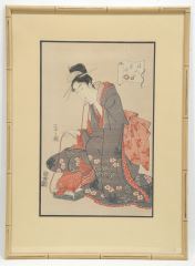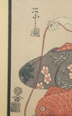 Woodblock Print After Yeishi, 15 x 9 5/8", "Household God Ebisu".