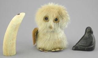LOT 188 Collection of Inuit Items: Face Attr to Letia Tagornak/Ptarmigan/2 Marine Items, NO EXPORT. Estimate: $60 - $120 Sold For: $60 Auction Date: Tuesday, July 29 2025 at 4:00 PM