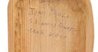 LOT 232 Squamish Cedar Mask signed Jim Paull , 9 5/8"h, "Human". Estimate: $60 - $100 Auction Date: Tuesday, July 29 2025 at 4:00 PM