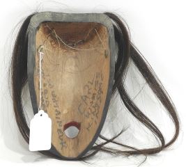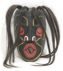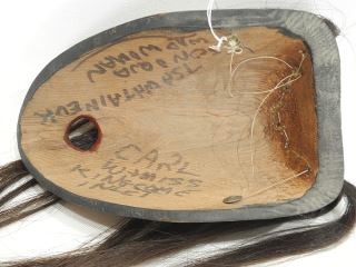 Miniature Kwagiulth Mask signed Carl Wamiss, 6 3/4"h, "Tsonoqua Wild Woman".