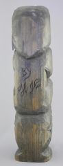 Northwest Coast Wood Figure signed H.Joe, 14"h, "Figure Holding Fish".