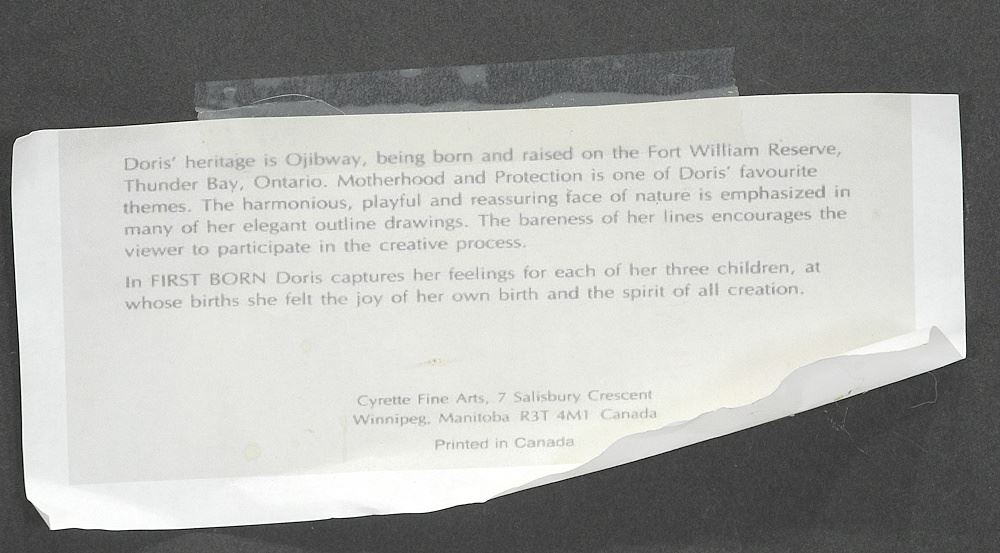 Serigraph signed Doris Cyrette, 9 7/8 x 13 3/4", "First Born" #281/295.
