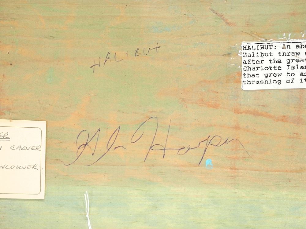 Coast Salish Panel Carving signed Glen Harper, 27 1/4"L, "Halibut".