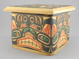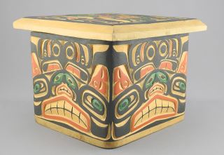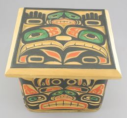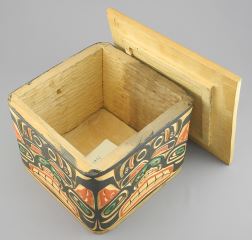 Kingcome Inlet Bentwood Box signed G.Robertson, 6 1/2 x 8 3/4 x 8 1/4".