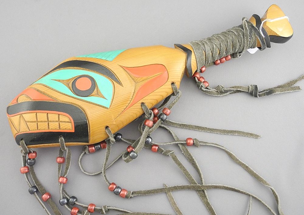 LOT 98 Northwest Coast Rattle Monogrammed RMC'84, 12 1/2"L. Estimate: $60 - $100 Sold For: $80 Auction Date: Tuesday, July 29 2025 at 4:00 PM