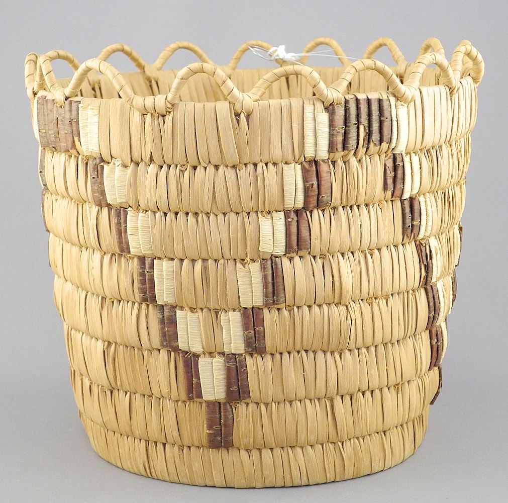 LOT 31 Salish Basket with Crenellated Rim, 7 1/2"h. Estimate: $60 - $100 Sold For: $60 Auction Date: Tuesday, July 29 2025 at 4:00 PM