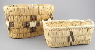 LOT 161 Two Salish Baskets: Oval (9 1/4"L) & Rectangular, 7 1/2"L. Estimate: $60 - $100 Auction Date: Tuesday, July 29 2025 at 4:00 PM