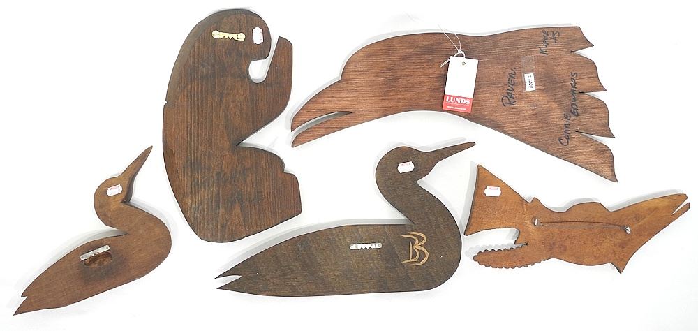 LOT 227 Five Northwest Coast Panel Carvings: M.Good/BB/C.Edwards/unsigned, Largest 17 1/4"w. Estimate: $100 - $200 Sold For: $150 Auction Date: Tuesday, July 29 2025 at 4:00 PM