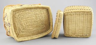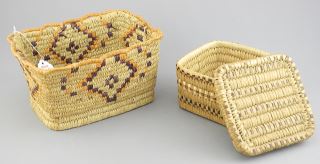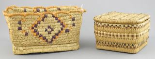 LOT 291 2 First Nations Baskets: Salish (3" h) & Grass, 7 5/8"w. Estimate: $50 - $70 Auction Date: Tuesday, July 29 2025 at 4:00 PM