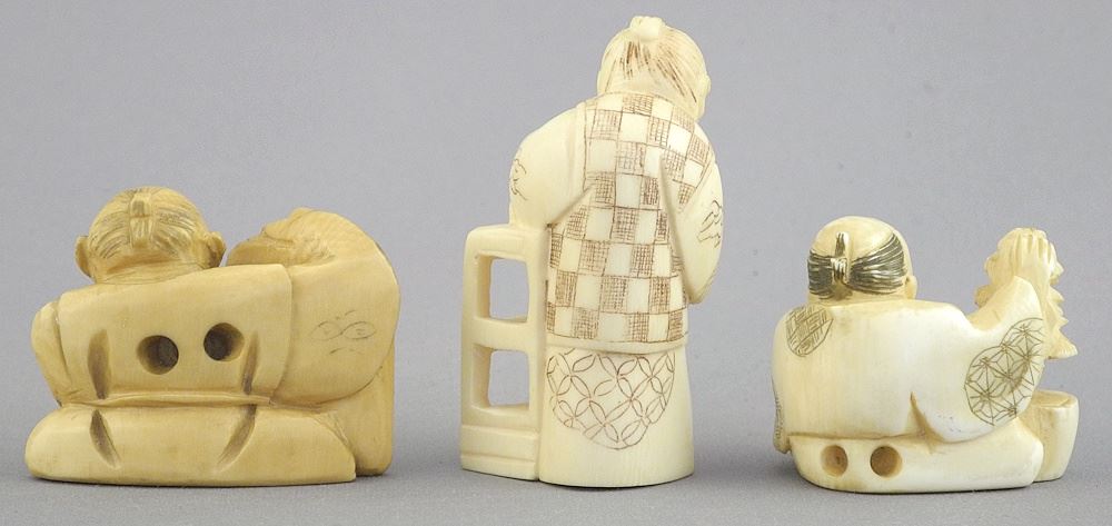 LOT 336 Three Japanese Netsuke: Bonsai/Two Drawer Chest/High Chair, signed, 1 1/8 - 1 7/8", NO EXPORT. Estimate: $100 - $200 Sold For: $100 Auction Date: Tuesday, July 29 2025 at 4:00 PM