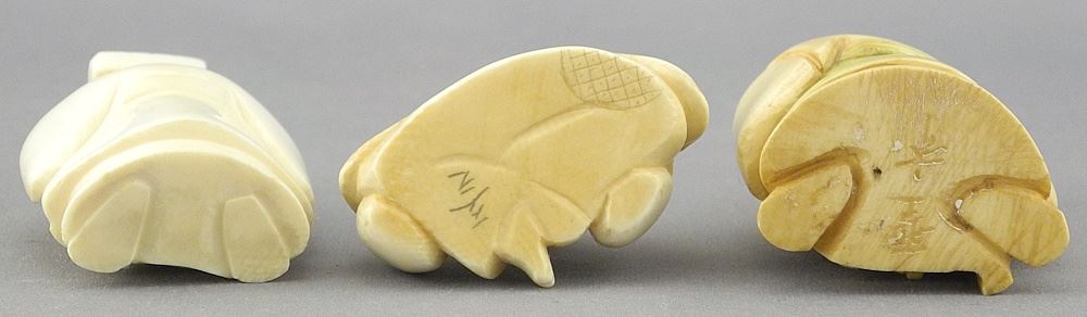 LOT 338 Three Japanese Netsuke: 2 Standing/ 1 Seated, 1 1/4 - 2" High, 69.2 Grams, No Export. Estimate: $80 - $120 Auction Date: Tuesday, July 29 2025 at 4:00 PM
