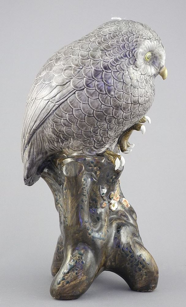 Japanese Kutani Porcelain Owl on Stump, 10 5/8"h (talon nicked).