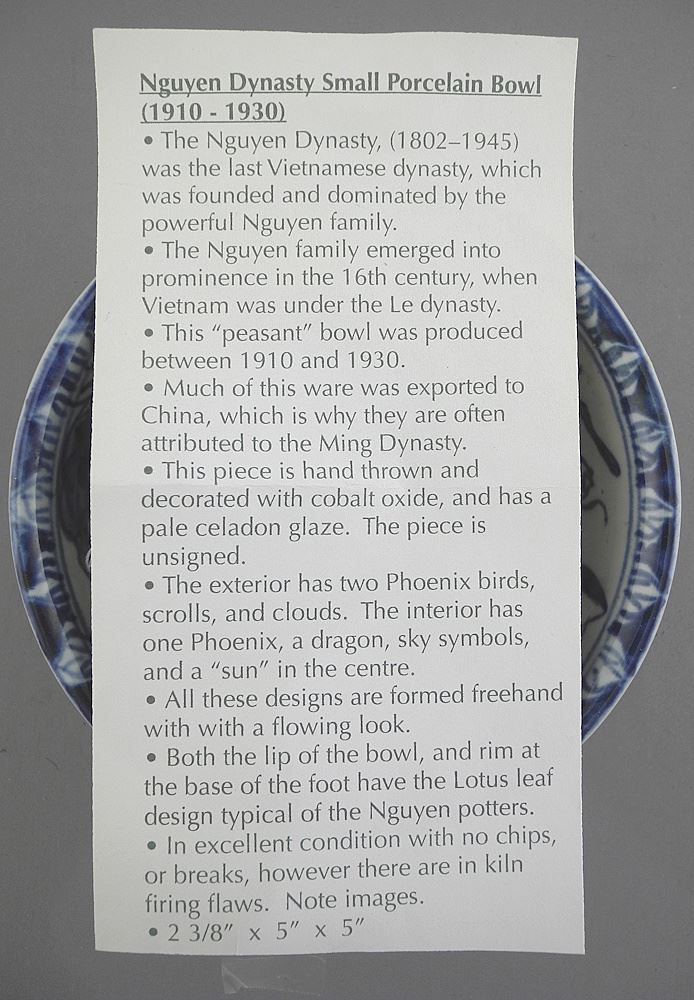 LOT 293 Nguyen Dynasty Porcelain Bowl (1910-1930), 2 3/8 x 5" Diameter. Estimate: $50 - $100 Auction Date: Tuesday, July 29 2025 at 4:00 PM