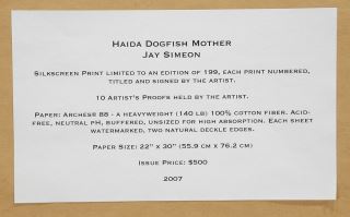 LOT 123 Haida Serigraph signed Jay Simeon 07', 25 x 16 1/4, "Dogfish Mother" #143/199. Estimate: $100 - $200 Sold For: $180 Auction Date: Tuesday, July 29 2025 at 4:00 PM