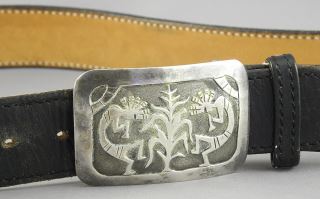 Southwest Sterling Silver (marked) Kokopelli Belt Buckle Monogrammed LG, 3 x 2", 42.9g.