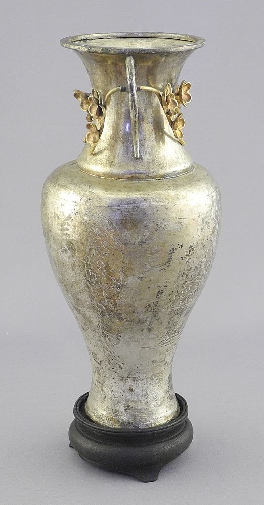 LOT 172 Japanese Silver Plated Vase, TH 8". Estimate: $50 - $60 Sold For: $25 Auction Date: Tuesday, July 29 2025 at 4:00 PM