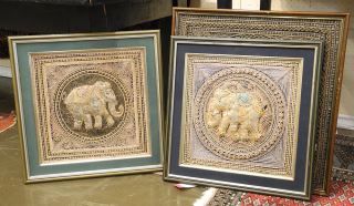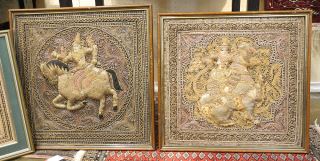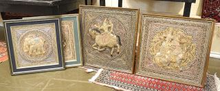 LOT 60 Two Pair of Burmese Kalaga Panels, 17 3/4 x 19" & 13 1/2 x 13 1/2". Estimate: $60 - $100 Sold For: $30 Auction Date: Tuesday, July 29 2025 at 4:00 PM