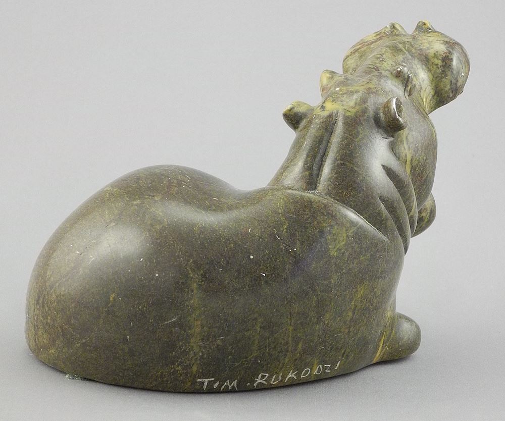 LOT 90 Carved Stone Hippo, Zimbabwean Sculpture signed Tim Rukodzi, 6 3/8" L, 1878g. Estimate: $60 - $100 Auction Date: Tuesday, September 30 2025 at 4:00 PM