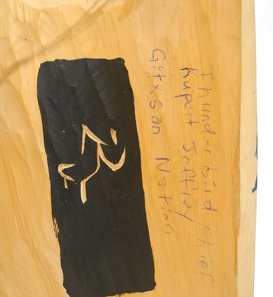 LOT 35 Gitxsan Yellow Cedar Mask signed Rupert Jeffrey, 20 1/2"h, "Thunder Bird Chief". Estimate: $200 - $400 Sold For: $500 Auction Date: Tuesday, September 30 2025 at 4:00 PM