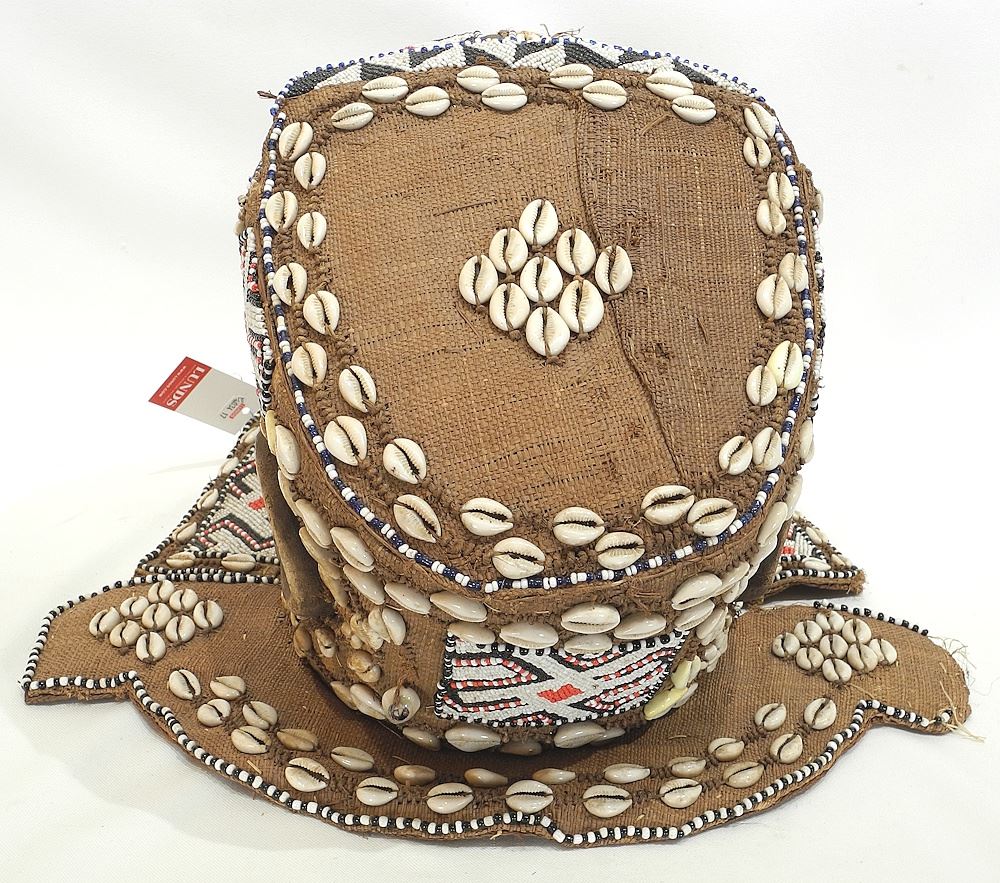 LOT 294 Kuba Helmet, Wood/Woven Fibre/ Lowrie, Congo, 22 1/2"h. Estimate: $500 - $750 Auction Date: Tuesday, September 30 2025 at 4:00 PM