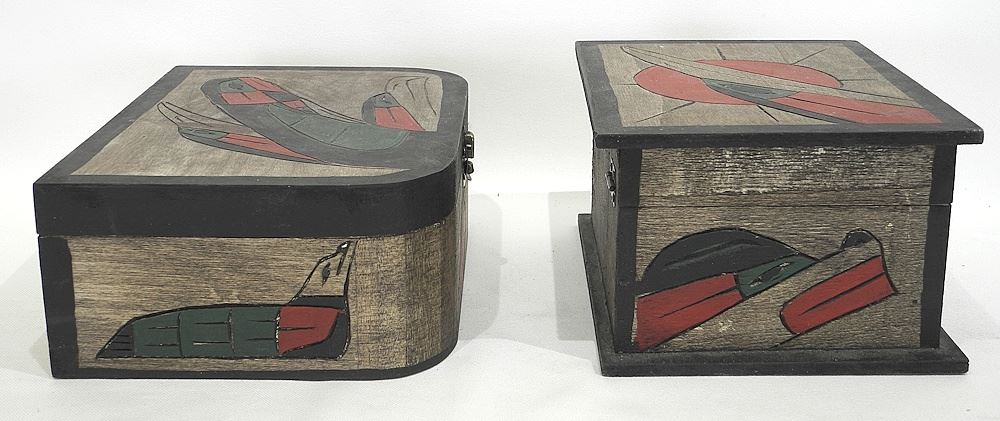 Two Coast Salish Boxes signed Dora & Frank Frenchie, 8 & 9 1/4"w.