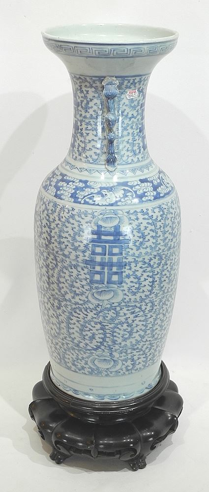 LOT 331 Chinese Blue & White Porcelain Vase (24"h) with Stand. Estimate: $200 - $300 Sold For: $425 Auction Date: Tuesday, September 30 2025 at 4:00 PM