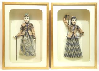 LOT 255 Pair of Indonesian Puppets Mounted in Shadow Boxes, Figures 17"h, Frames 26"h. Estimate: $50 - $100 Auction Date: Tuesday, September 30 2025 at 4:00 PM