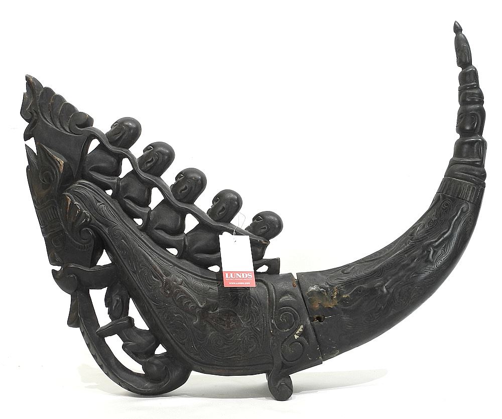 Carved Wood Horn of Medicine Batak, Sumatra, 24 1/2"L.