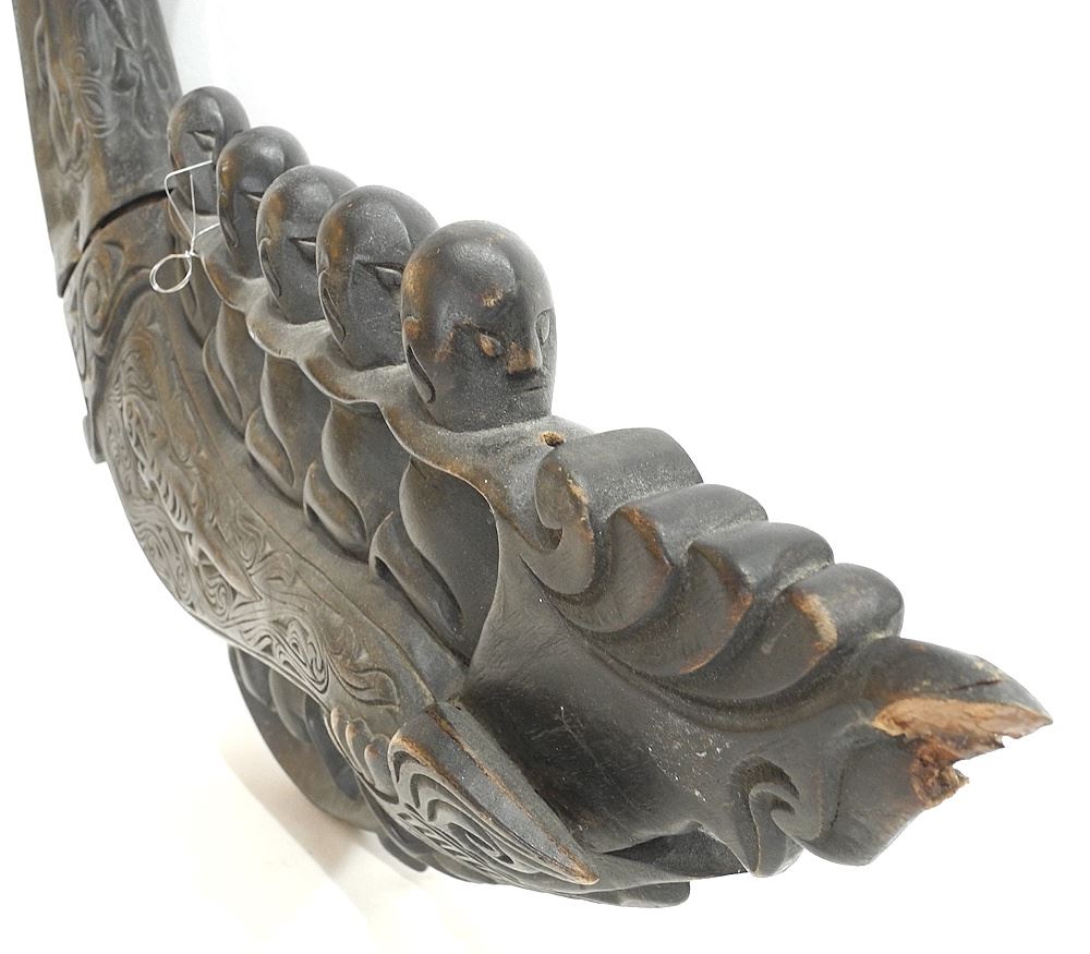LOT 273 Carved Wood Horn of Medicine Batak, Sumatra, 24 1/2"L. Estimate: $60 - $100 Sold For: $45 Auction Date: Tuesday, September 30 2025 at 4:00 PM