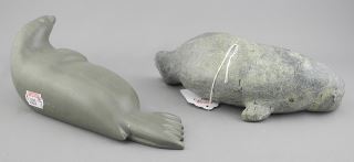 LOT 154 Two Inuit Sculptures, Beluga by Saumik (6 7/8"L) & Seal by Lucy N., 7"L. Estimate: $60 - $100 Sold For: $50 Auction Date: Tuesday, September 30 2025 at 4:00 PM