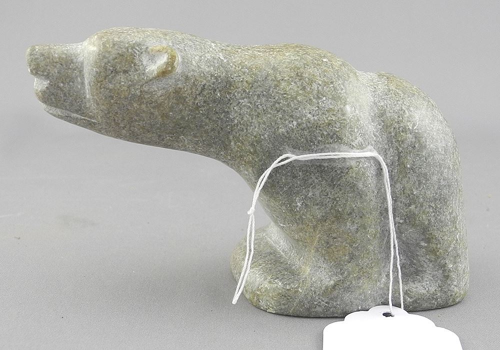 Inuit Stone Bear signed Amiraq (Eric Lester), 4 1/4".