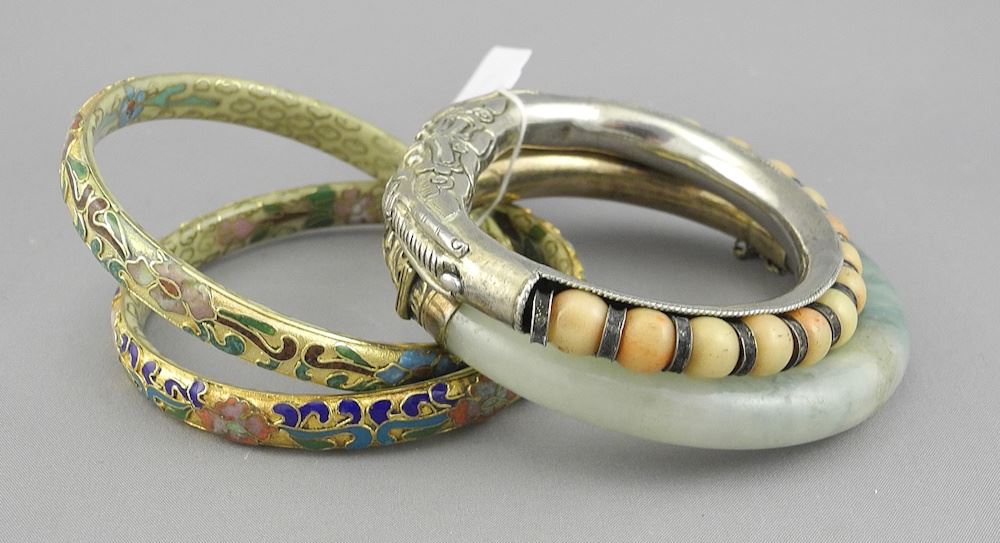 Collection of Chinese Bangles & Hinged Bracelets with Lighter, 2 3/4 " Diameter.