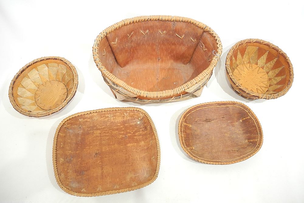 LOT 163 Collection of Birch Bark Basketry, 8 1/2 - 14"w. Estimate: $60 - $120 Sold For: $100 Auction Date: Tuesday, September 30 2025 at 4:00 PM