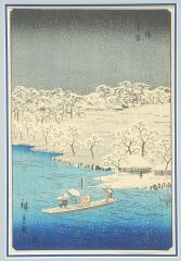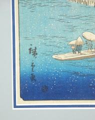 LOT 22 Utagawa Hiroshige II, 9 3/4 x 6 1/2, "Evening Snow at Hashiba". Estimate: $100 - $200 Sold For: $100 Auction Date: Tuesday, September 30 2025 at 4:00 PM
