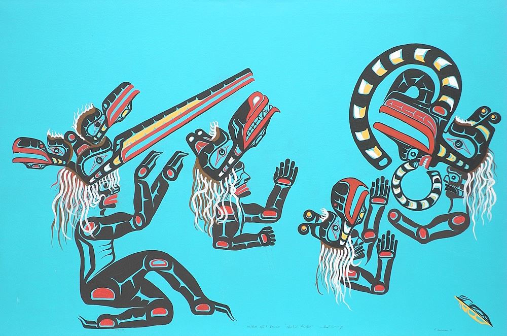 LOT 338 Heiltsuk Acrylic on Canvas signed Fred Anderson Jr., 24 x 36", "Spiritual Freedom". Estimate: $150 - $200 Sold For: $150 Auction Date: Tuesday, September 30 2025 at 4:00 PM