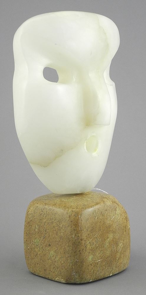 LOT 235 Metis Stone Sculpture signed (Vance) Theoret'95, "Mask on Stand". Estimate: $150 - $300 Auction Date: Tuesday, September 30 2025 at 4:00 PM