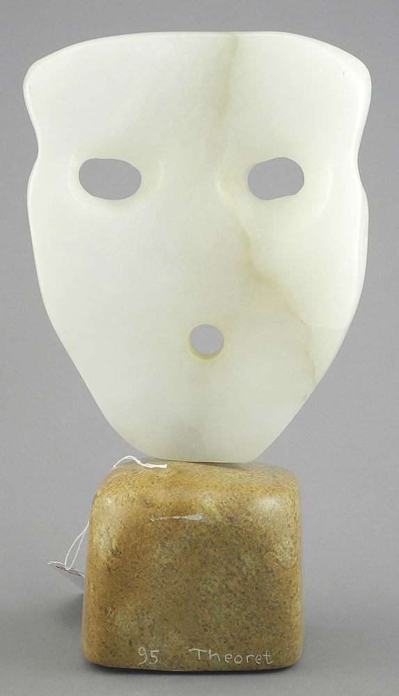 Metis Stone Sculpture signed (Vance) Theoret'95, "Mask on Stand".