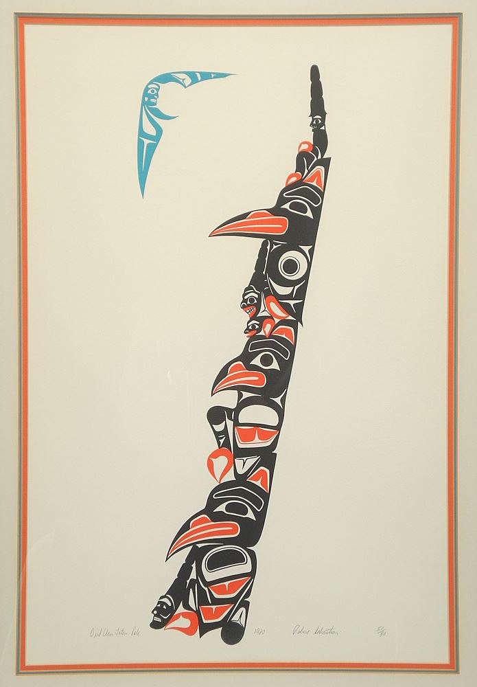LOT 256 Serigraph signed Robert Sebastian, 26 3/8 x 17 5/8", "Owl Clan Totem Pole", #51/90. Estimate: $100 - $150 Sold For: $140 Auction Date: Tuesday, September 30 2025 at 4:00 PM