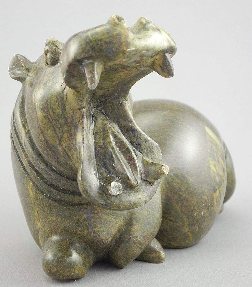 Carved Stone Hippo, Zimbabwean Sculpture signed Tim Rukodzi, 6 3/8" L, 1878g.