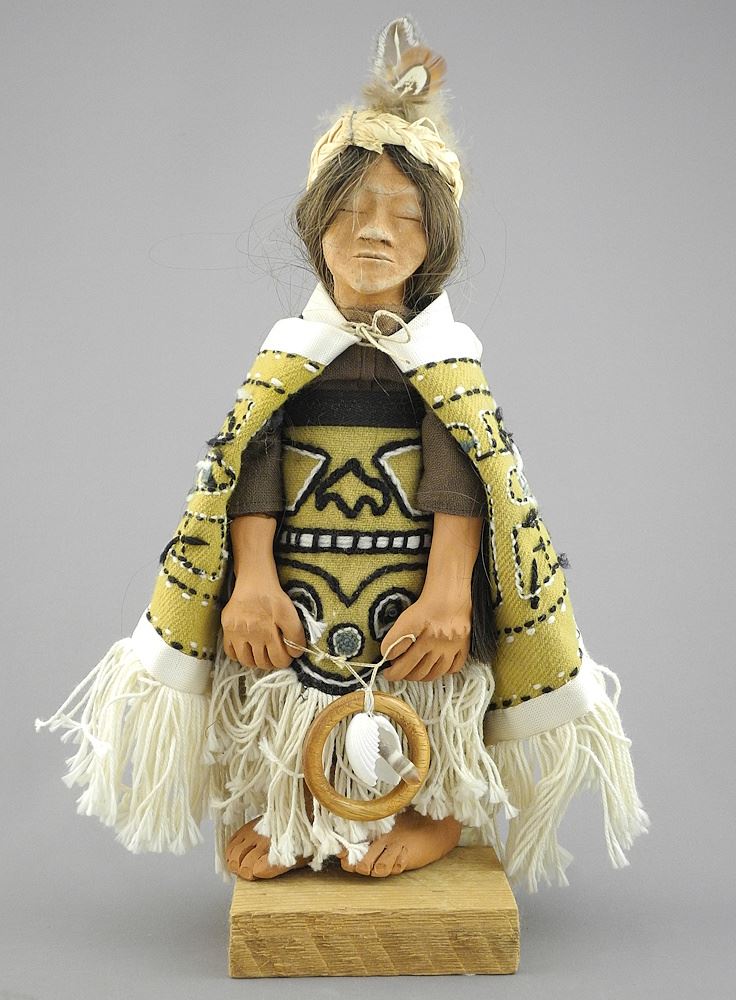 LOT 174 Tsimshian Doll in Chilkat Dancing Blanket by Dorita Grant with COA. Estimate: $60 - $100 Sold For: $90 Auction Date: Tuesday, September 30 2025 at 4:00 PM