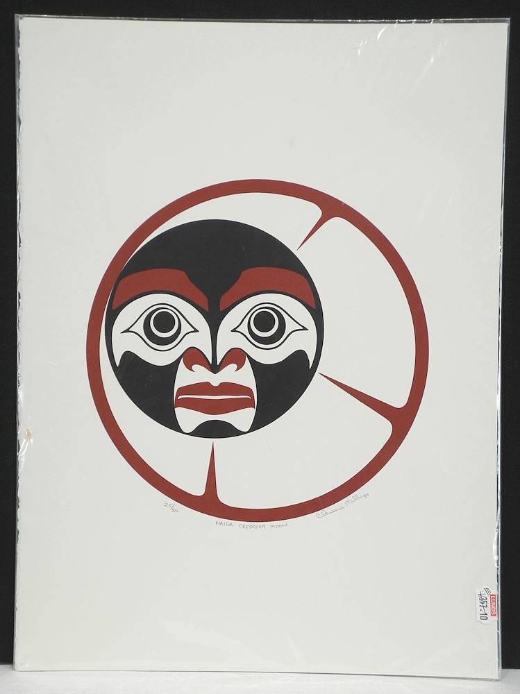 Haida Serigraph signed Clarence Mills'89, 15 x 11 1/8", "Haida Crescent Moon" #25/50.