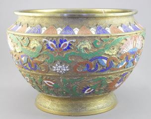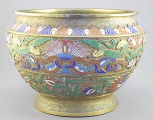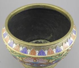 Japanese Champleve Jardiniere Stamped Made in Japan, 7 1/2 x 10 1/8".