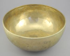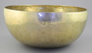 Tibetan/Himalayan Brass Singing Bowl Engraved Varuna, 11 1/4" Diam.