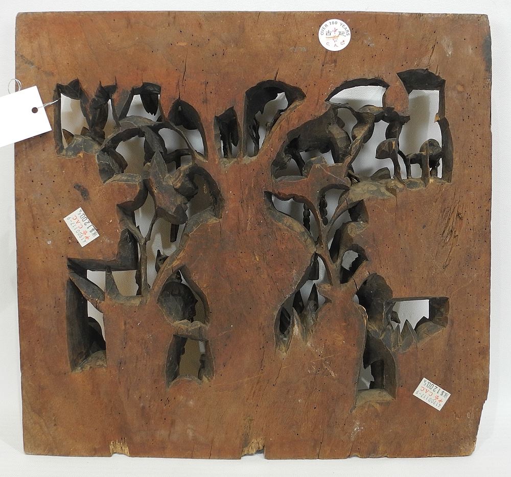 Qing Carved Wood Architectural Panel with Traces of Lacquer Gilding.