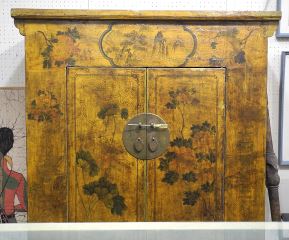Chinese Decoupage Double Door Cabinet, 69"h.