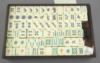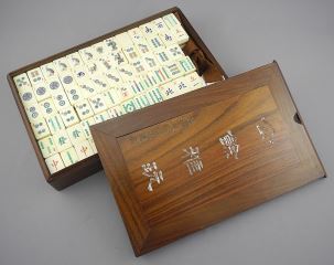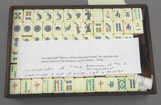 LOT 400 Bone & Bamboo Tin Mah Jong Set in Rosewood Case, 1 1/2 x 10 1/4 x 6 5/8" (edge missing). Estimate: $200 - $300 Sold For: $150 Auction Date: Tuesday, September 30 2025 at 4:00 PM
