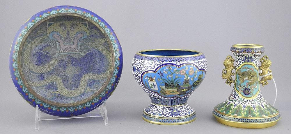 LOT 126 Chinese Sectional Cloisonne Vase (7 5/8"h) with Box, Including Worn Dish. Estimate: $60 - $100 Sold For: $50 Auction Date: Tuesday, September 30 2025 at 4:00 PM