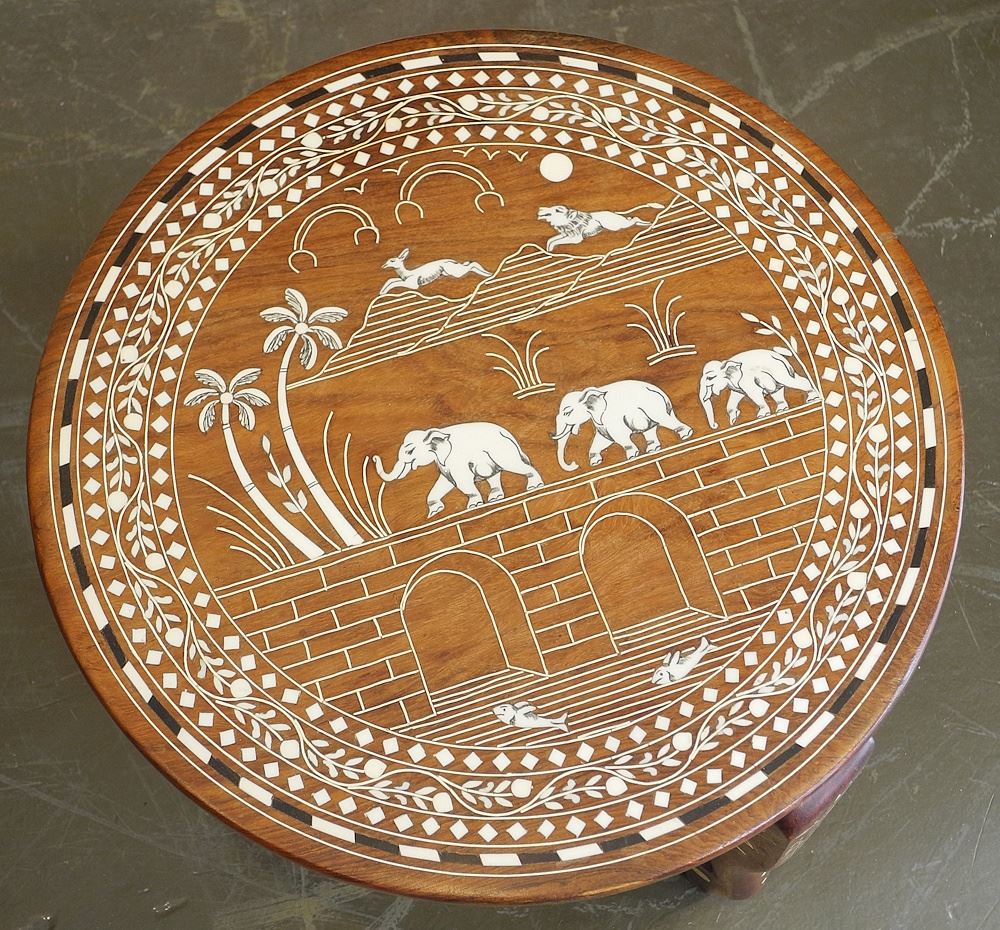 LOT 304 "Sisoo Wood Inlaid Art" Indian Round Table, 15"h. Estimate: $60 - $100 Sold For: $60 Auction Date: Tuesday, September 30 2025 at 4:00 PM