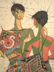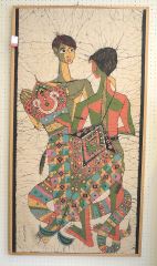 Sri Lanka Batik Panel signed Bandula (Fernando), 61 x 31 1/2".