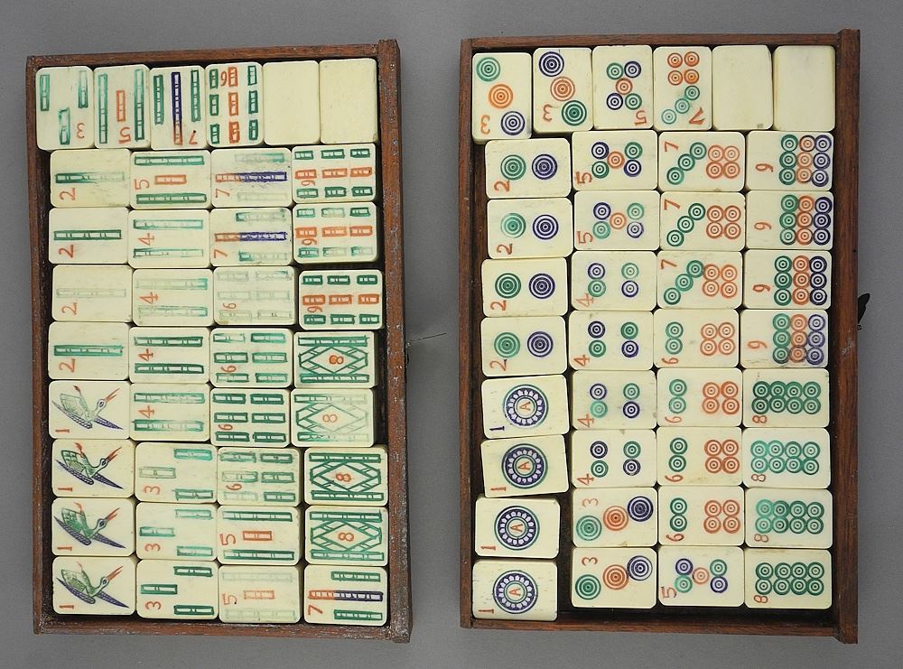 Bone & Bamboo Tile Mah Jong Set in Box, C.1900, 6 3/8 x 9 1/4 x 6 1/2".
